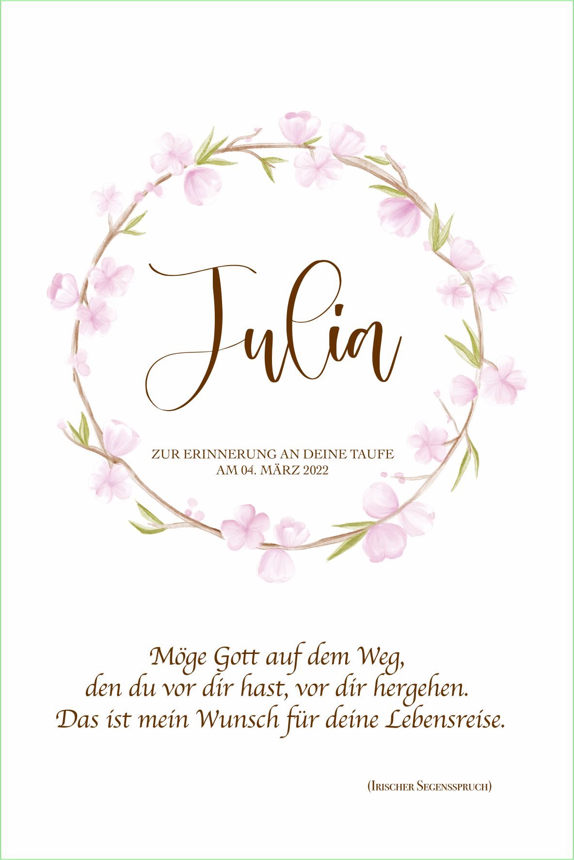Der Taufspruch, sowie der Name und das Datum, sind frei wählbar. Einfach in die Zeile "Ihr Text" eintragen.